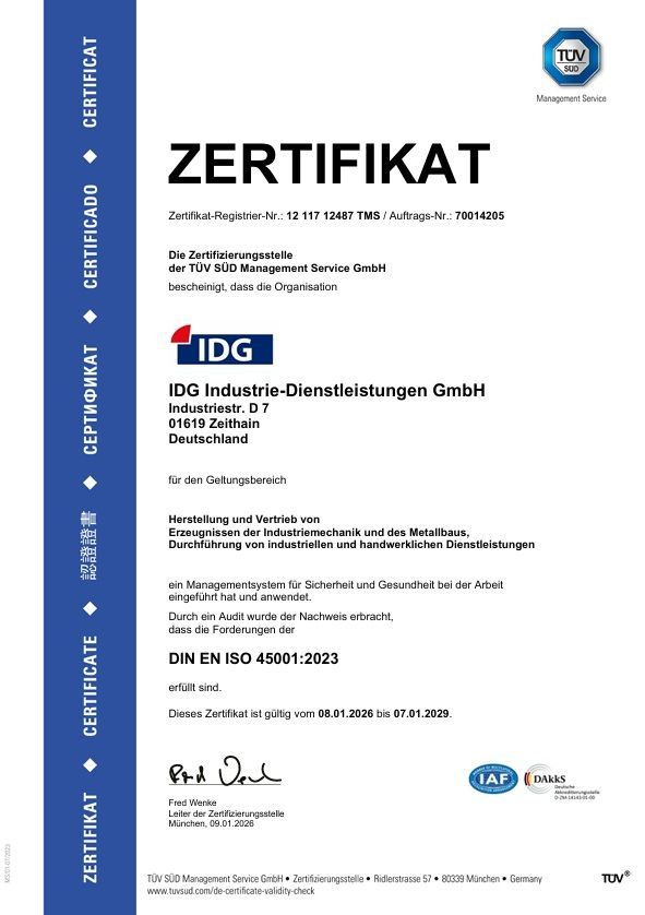 Wir haben einen hohen Anspruch an Qualität und Sicherheit für alle unserer Leistungen und Produkte. Diese Unternehmensphilosophie wird von einer ständig wachsenden Kundenanzahl und deren Zufriedenheit belegt. Unsere Innovationen und Referenzen zeigen, dass Kunden aus dem ganzen Bundesgebiet die IDG auch für internationale Projekte, mit speziellen Instandhaltungsarbeiten und Sonderbauten im Metall- und Stahlbau beauftragen.